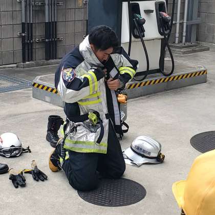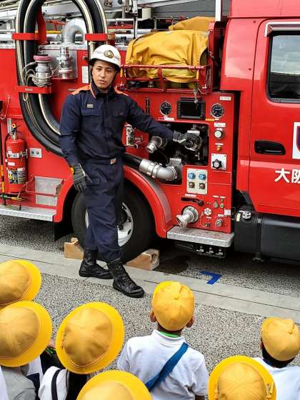 消防車の仕組みを教えていただいたり、放水する様子を実際に見せていただいたりしました。