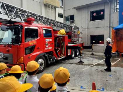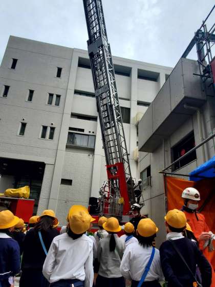 また、はしご車を伸ばしてどのくらいの高さまで消火活動や救出活動ができるかなどについても教えていただきたした。消防署の皆様、本日はお忙しい中本当にありがとうございました。