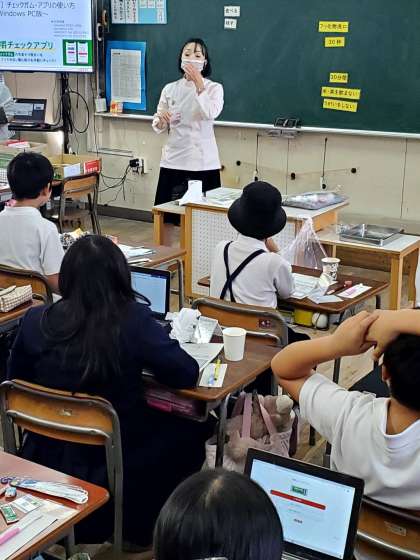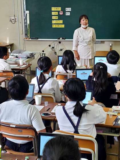 これは毎年4年生が行っているもので、虫歯になりにくい歯にするための取り組みです。歯は一生使い続けるものですから、日頃からしっかりとケアしたいものです。