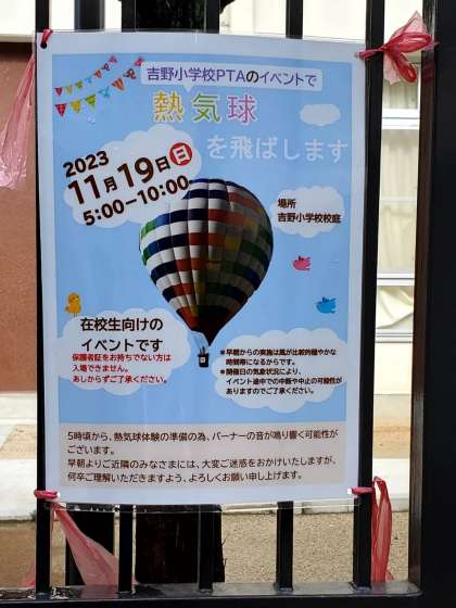 明日は吉野小学校の運動場で気球をあげるイベントが行われる予定です。いいお天気になりますように。