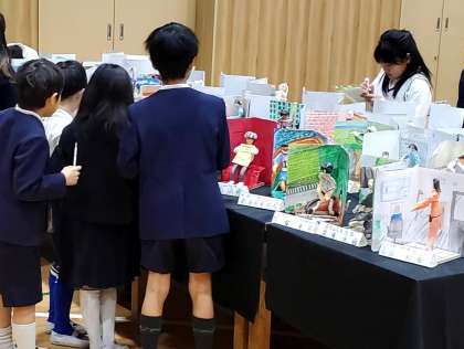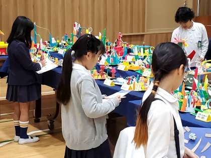 ご覧の写真は今日の1時間目の講堂の様子です。児童は1クラスずつ順番に鑑賞します。ぜひお友達のよいところや工夫しているところをたくさん見つけてくださいね。