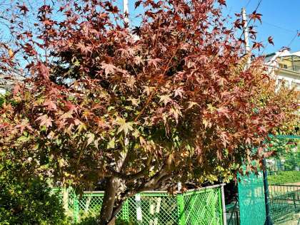 ご覧の写真は校庭の木々の様子です。上から順にヤマモミジ、ハナミズキ、八重桜です。今年は色づく前に葉を落とす木が多く、紅葉を楽しむことができないかなと思っていましたが、ここ数日の間に少しずつ赤くなってきているように感じます。