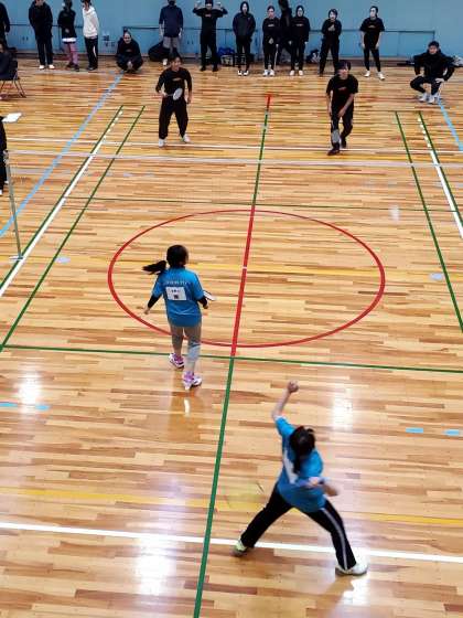 今日、福島区スポーツセンターにおいて、福島区PTAバドミントン大会が行われました。吉野小学校からは2チームが出場しました。