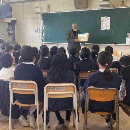 今日は4年生の順番でした。2時間目が2組、3時間目は1組がお話を聞かせていただきました。