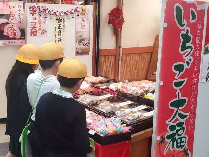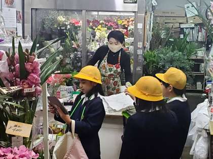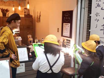 今日は子どもたちが予め、見学したいお店やインタビューしたい事がらを決め、グループに分かれて見学しました。