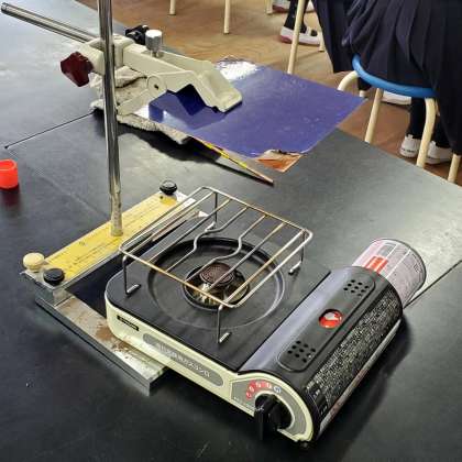 ご覧の写真は今日の6時間目、4年生が理科の学習をしている様子です。本時は金属のあたたまり方について、実験を通して確かめました。