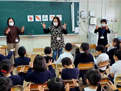 今日は2年生がお話し会をしていただく日でした。2時間目から4時間目まで1クラスずつ順に読み聞かせをしてただきました。