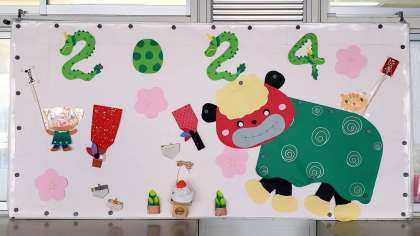 一番上の写真はいきいき教室入り口横の掲示物です。こちらも新春バージョンにリニューアルされました。