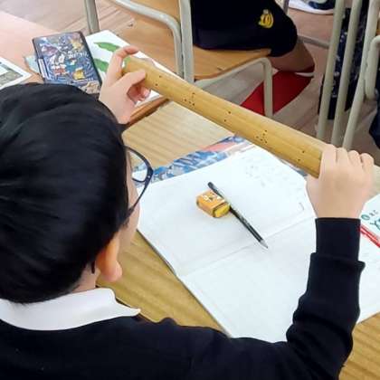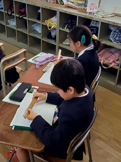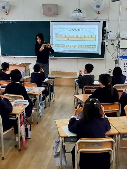 今日の2時間目、2年生が算数の学習をしている様子です。くじら尺を使って長さを図る学習をしていました。ぜひ算数時間だけでなく、普段の生活の中でも使ってみてくださいね。
