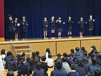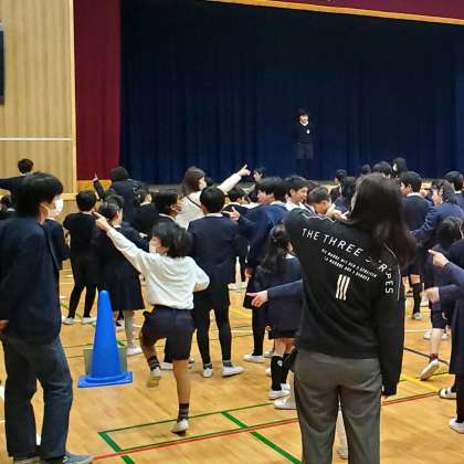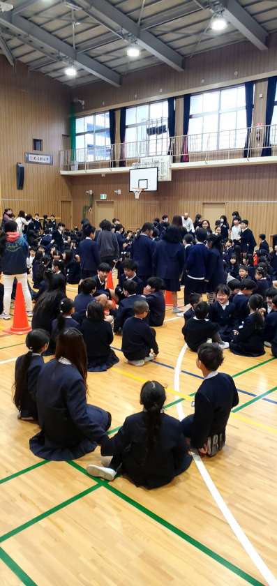 今日は3学期初めての児童集会てわした。はじめに毎週木曜日、保健室にお手伝いに来られる浅野先生の紹介をした後、集会の定番「猛獣狩りに行こうよ」のゲームをしました。