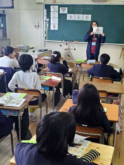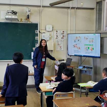 3時間目、4年生が英語の学習をしている様子です。今日は何時に何をするなど、1日の流れを英語で表現する学習でした。しっかり声が出ていて素晴らしいです。