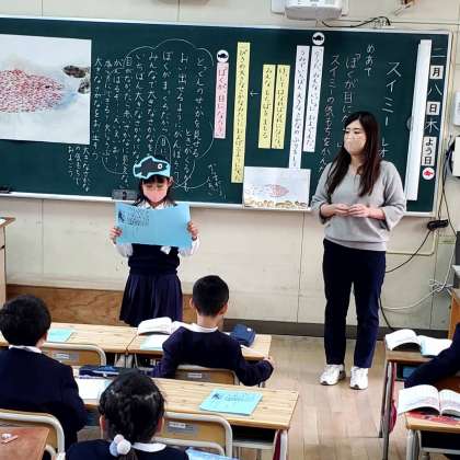 今日の3時間目、1年生の教室で国語科の公開授業が行われました。スイミーを題材に気持ちを読み取ったり、読み方を工夫したりしました。先生やお友達の話をしっかり聞くことができていて素晴らしいです。