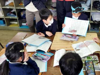 今日の5時間目、1年生の教室で国語科の授業研究会を行いました。「スイミー」を題材に、主に登場人物の気持ちを読み取る学習でしたが、みんな一生懸命考えることができていて改めて成長を実感しました。
