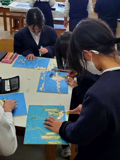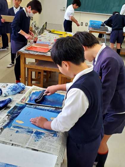 5時間目、5年生が図工室で色版画をしている様子です。色を重ね合わせるのが大変ですが、丁寧に刷っていくとカラフルで楽しい作品が出来上がります。最後までがんばってくださいね。