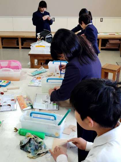 今日の2時間目、4年生が図工の学習をしている様子です。ご覧のように木工工作をしています。どんな作品が出来上がるのか楽しみです。