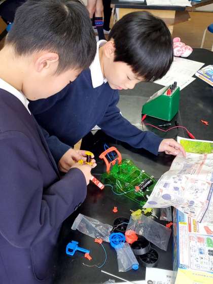 同じく3時間目、5年生が理科の学習をしている様子です。今日は電磁石の働きについて勉強していました。少し組み立てが難しいかもしれませんががんばってくださいね。