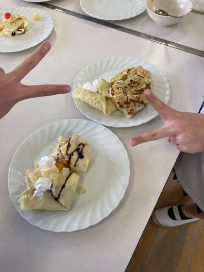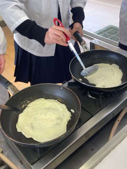 今日はお知らせしておりましたように、6年2組がクレープ作りをしました。