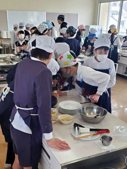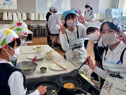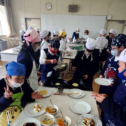 今日の午後、5年2組が若野先生にもお手伝いいただきながらパンケーキ作りをしました。とっても楽しそうに活動していたので写真を撮っているこちらまで楽しくなりました。