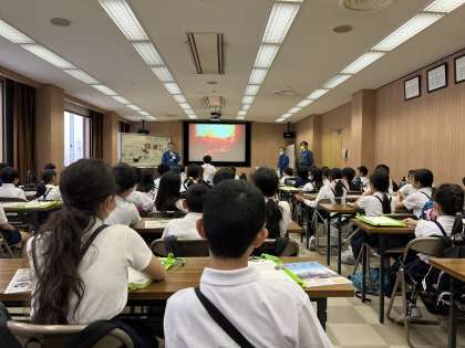 4年生、初めての社会見学に行きました。西淀川区にあるゴミ焼却工場でパッカー車がどのようにゴミを運んでくるかやゴミが燃えている様子を見ました。たくさんのゴミがコンピューターによって、効率的に処理されている様子を見て、とても感心していました。