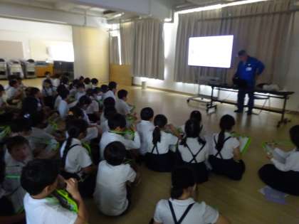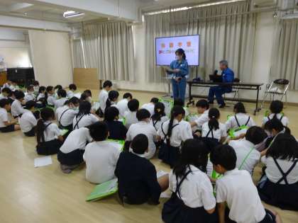 3時間目は、環境局の方がゴミの分別について大切さについて、パワーポイントを用いてお話をしてくださいました。真剣にメモをとったり、質問したりして自分たちができることについて考える時間を過ごすことができました。