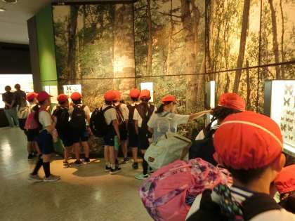 オリエンテーリングが終わった後は、学年遊びをしました。学年遊びは「先生鬼ごっこ」、「だるまさんがころんだ」をしました。みんな大盛り上がりでした。自然史博物館では、興味ある展示をじっくり観察し、大きな化石をみて「おぉ〜」ととても感心していました。電車のマナーもよく、教頭先生に褒められました。とてもよく頑張った遠足でした。