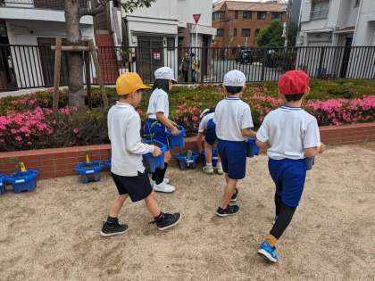 生活科の学習でミニトマトを植えました。大きく育つように丁寧に苗を植えていました。毎日水やりをして、ミニトマトができるのが今から楽しみですね。