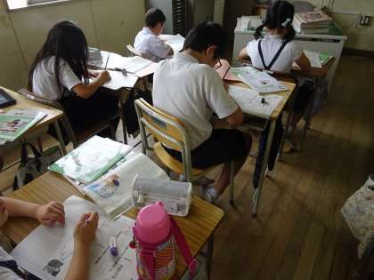 物語文「走れ」を学習しています。登場人物の気持ちを想像したことを学級で共有した後、一人ずつが気持ちを文章に書いてふりかえりを行っています。