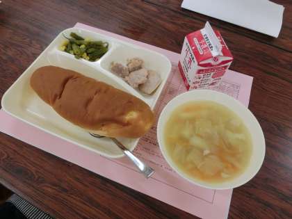 6月12日(水)はPTA学校給食試食会が開催されました。1年生の保護者の皆様とPTA給食委員会の皆様合わせて21名の参加がありました。献立は「おさつパン、牛乳、鶏肉のガーリック焼き、スープ、さんどまめとコーンのサラダ」でした。参加された保護者の方からは、「普段子どもたちが食べている給食が知れてよかった」「おいしい!おなかいっぱいになりました!」と好評な意見が聞かれました。