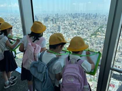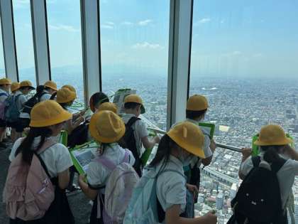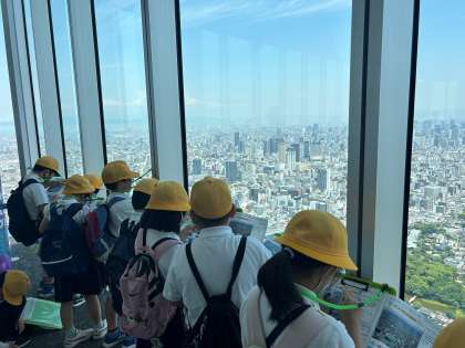 エレベーターで60階まで上がると、絶景に歓声が上がりました。