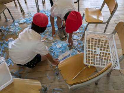 子ども祭りの様子です。お店番では自分の役割にいっしょうけんめい取り組んでいました。準備の時にも他の学年と協力して楽しそうに活動していました。