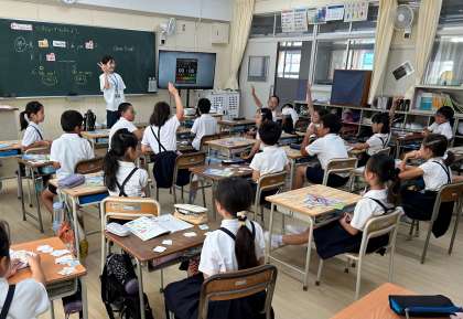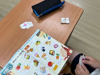 果物、野菜、スポーツ、色のカードを使ってマッチングゲームをしました。友達の好きな物を予想して、What 〇〇, do you like? と尋ねました。楽しんでゲームをおこなうことができていました。