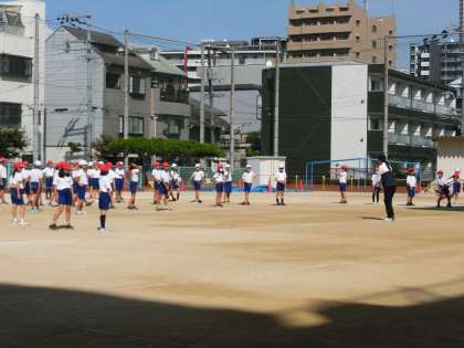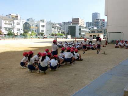 運動会の練習が本格的に始まりました。3年生「台風の目」、4年生「ダンス}の様子です。