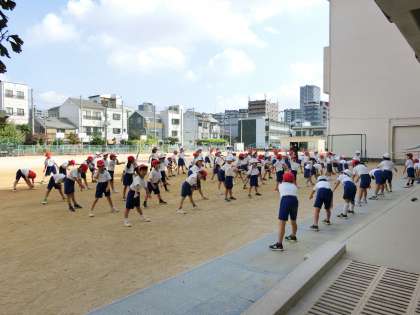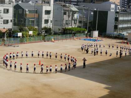 1年生はラジオ体操と玉入れの練習をしました。1年生初めての運動会の練習がんばっています!