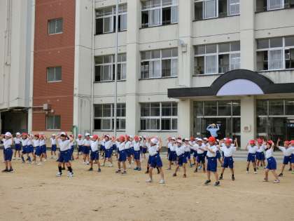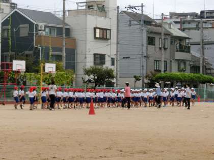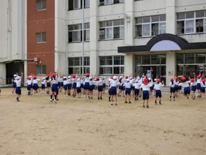 1年生玉入れの途中で踊る「チェッコリダンス」と入場行進の練習をしました。とてもかわいいダンスで、みんなノリノリでした。