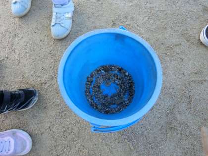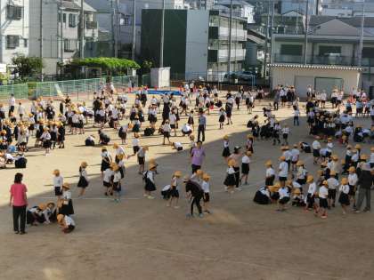 10月10日の児童集会は、運動会に向けてみんなが怪我をしないように、全校児童で運動場の石ひろいをしました。
