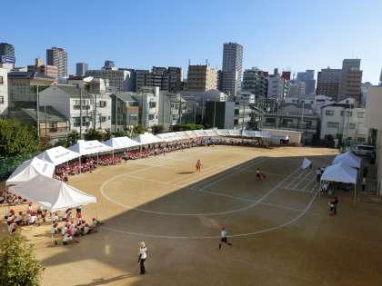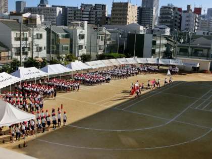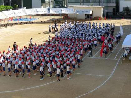 運動会の全体練習1を行いました。入場、開会式、ラジオ体操などの練習をしました。