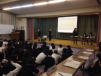 11月26日(木)6時間目に学校保健委員会を開催しました。テーマは、「すいみん」です。健康委員会からアンケートなどを元にした発表があり、よい睡眠の取り方についてみんなで考えました。最後に学校耳鼻咽喉科の田中先生、学校薬剤師の濱田先生からお話をいただきました。