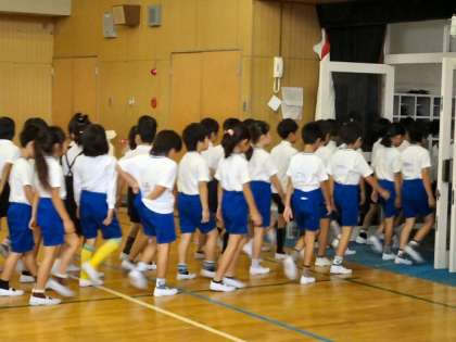 今日は、10月15日(火)ですが、三連休明けの火曜日なので、朝会がありました。休み明けなのでどうかな?と思っていましたが、どの子も元気よく登校し、朝会にも遅れることなくサッサと集合していました。