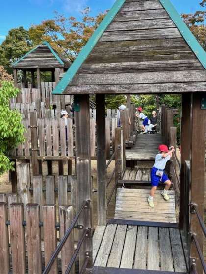 遊具で思い切り遊んでいます。