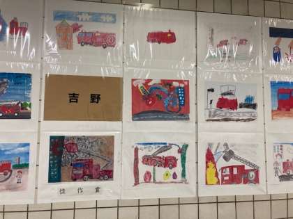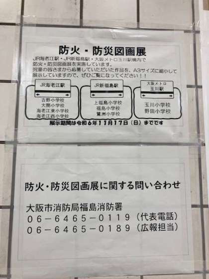 11月17日(日)まで、防火・防災図画展がJR海老江駅で実施されています。吉野小学校の児童の絵も展示されています。