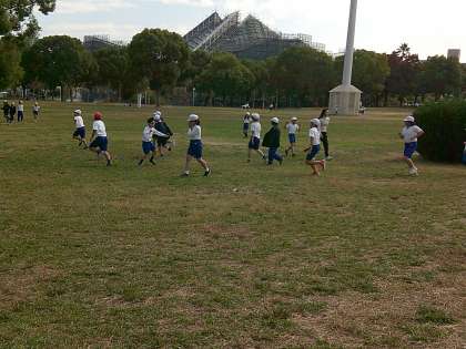 お弁当を食べ終わったら、学年遊びをしました。手つなぎ鬼をしたり、だるまさんがころんだをしたりと思いっきり体を動かした遊びをみんなでしました。朝は少し肌寒かったですが、走ったおかげか体はぽかぽかになりました。