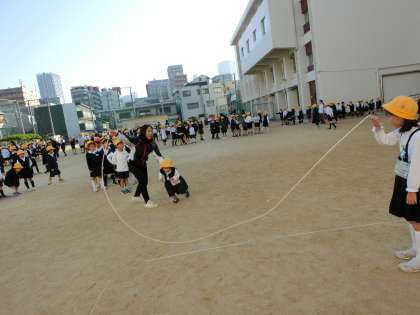 11月14日(木)の児童集会は「なわとびチャレンジ」でした。各学年でなわとびの目標をたてて、クラス単位で大繩にチャレンジしました。さわやかな天気の中、みんな楽しく取り組むことができました。