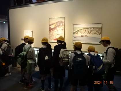歴史博物館では、大阪の古代から現代までの歴史について勉強しました。ピース大阪では、大阪大空襲の時の資料などを見学し、戦争の悲惨さや、平和の大切さについて学習しました。