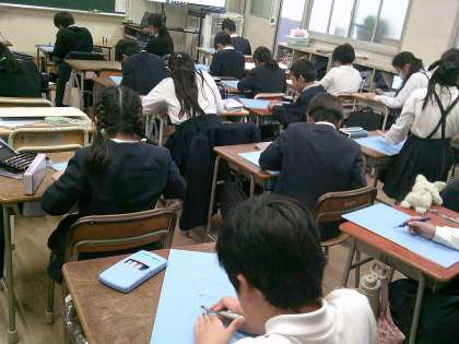 4年生は初めて彫刻刀を使います。1回目は安全に使うためのルールや三角刀や丸刀の使い方を、2回目は実際に様々な模様を彫刻刀を使って表す練習をしました。今日は3回目なので、いよいよ版木に絵をかいて彫りすすめていきます。2回練習した分、コツを大分つかめるようになってきました。どんな作品ができるか楽しみです。