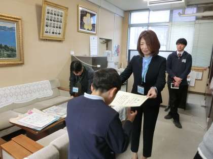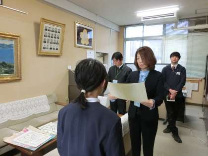 12月16日の全校朝会はチームズで行いました。習字や絵画などたくさんの表彰がありました。