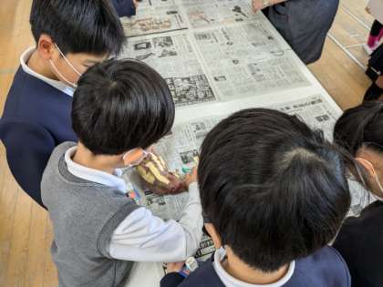 いもほりをしたいもを使ってスイートポテトを作りました。2年生のみんなには皮むきのお手伝いをしてもらいました。ピーラーを上手に使ってみんなで皮をむきました。