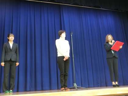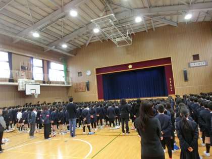 3学期が始まり、始業式がありました。校長先生からは「3学期はまとめの学期、また準備の学期でもあります。目標をもってがんばりましょう」とお話がありました。また、3学期からお世話になる保健室学生ボランティアの日高先生、図書室ボランティアの高見先生の紹介がありました。