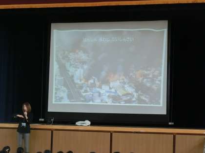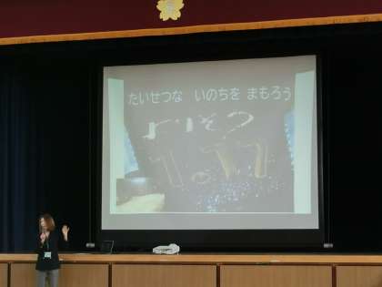 1月20日の児童朝会は講堂で行いました。校長先生から30年前におこった「阪神淡路大震災」のお話がありました。地震がおきたときにどうすればいいのか、大切な命を守る行動についてのお話もあり、みんな真剣に聞いていました。