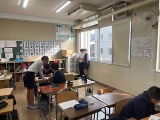 子どもたちは、コンビやトリオを組んでコンビ名を考え、事前に準備されたネタをもとにボケ、ツッコミを考えました。いろいろはアイデアを出し合い自分たちのネタを仕上げていました。漫才当日が楽しみです。