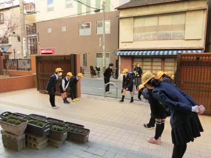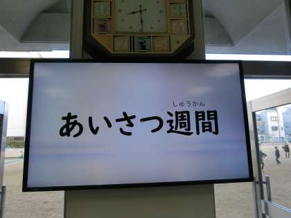 2月3日〜7日は「あいさつ週間」です。運営委員会の人たちが朝早くから、あいさつを呼びかけています。気持ちのよいあいさつが響いていました。